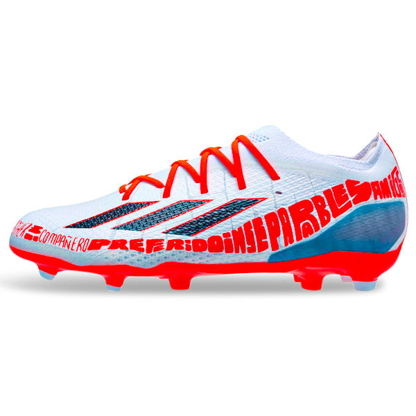 Lionel Messi is currently wearing the latest adidas X Crazyfast football boot from the iconic adidas Messi Infinito Pack. This boot collection draws inspiration from his Argentinean roots, featuring touches of blue in the branding and laces.